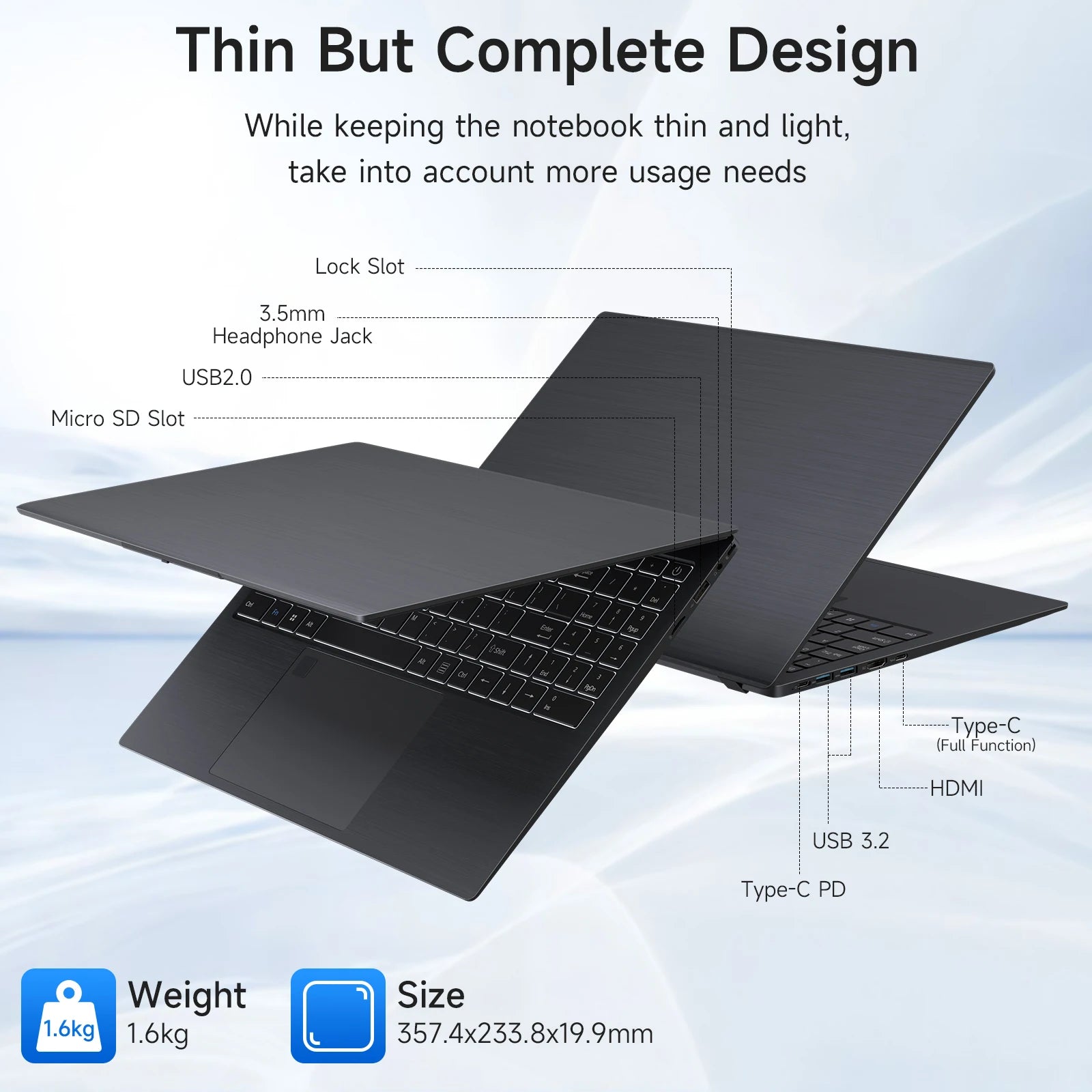 15.6 Inch Business Laptop Notebook PC CPU N5095 16GB RAM 1TB SSD Storage Windows 11 Fingerprint Recognition Backlit Keyboard