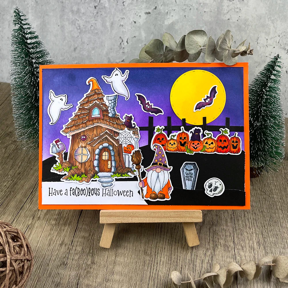 MangoCraft Halloween Gnome Cutting Dies Clear Stamp Castle DIY Scrapbooking Dies Stampset Paper Cards Album Stencil Decor